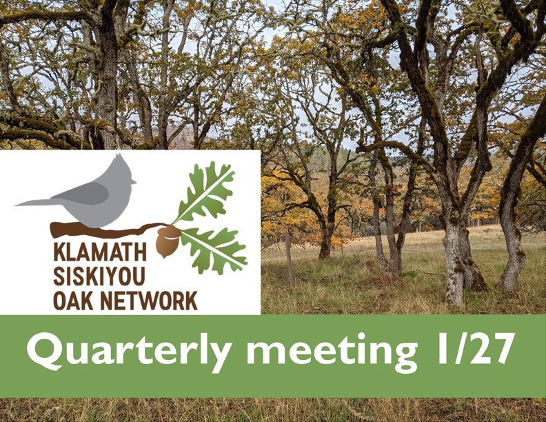 The Klamath Siskiyou Oak Network (KSON) is holding its first quarterly meeting of 2022 on Thursday, January 27th from 9-10:30 am.