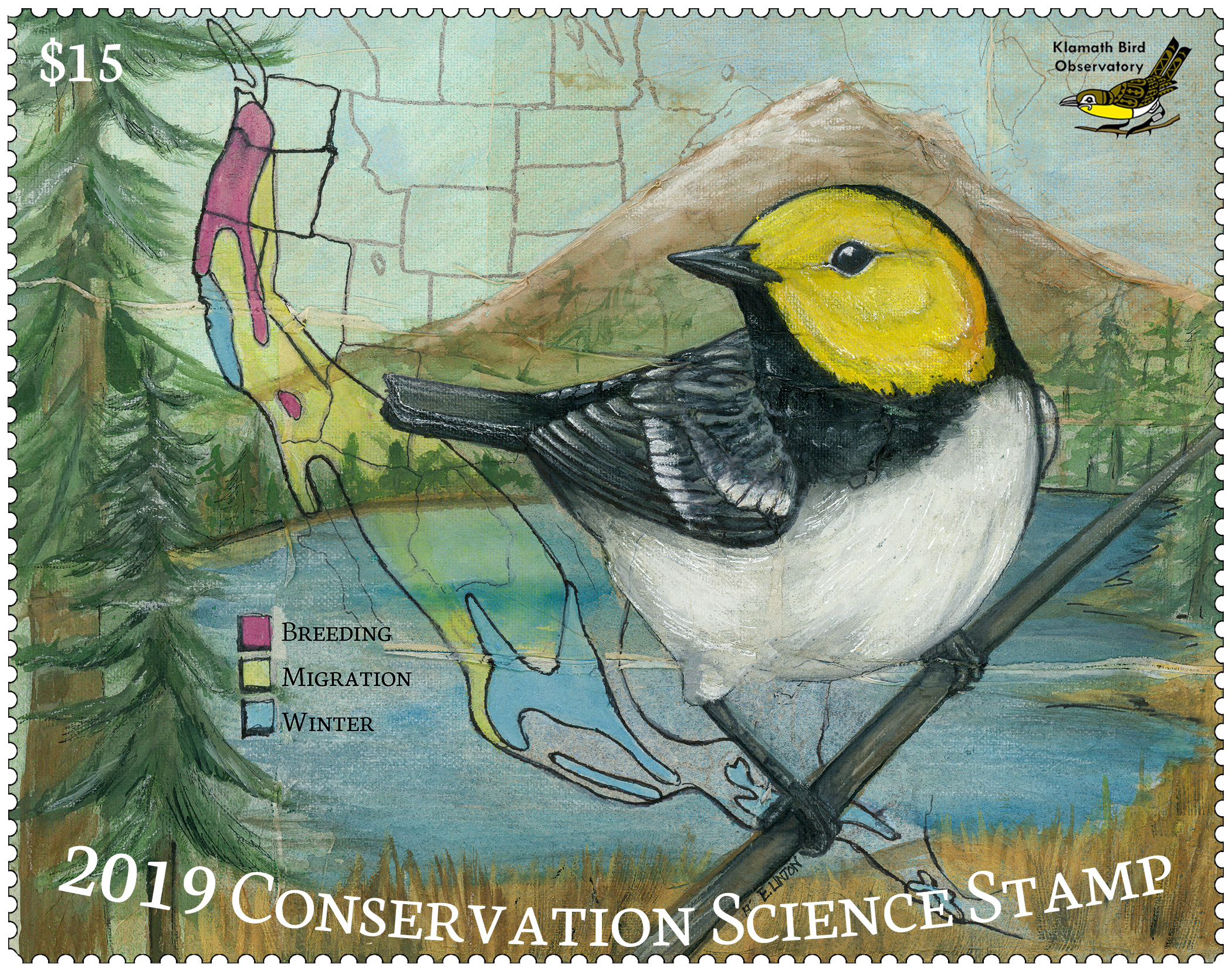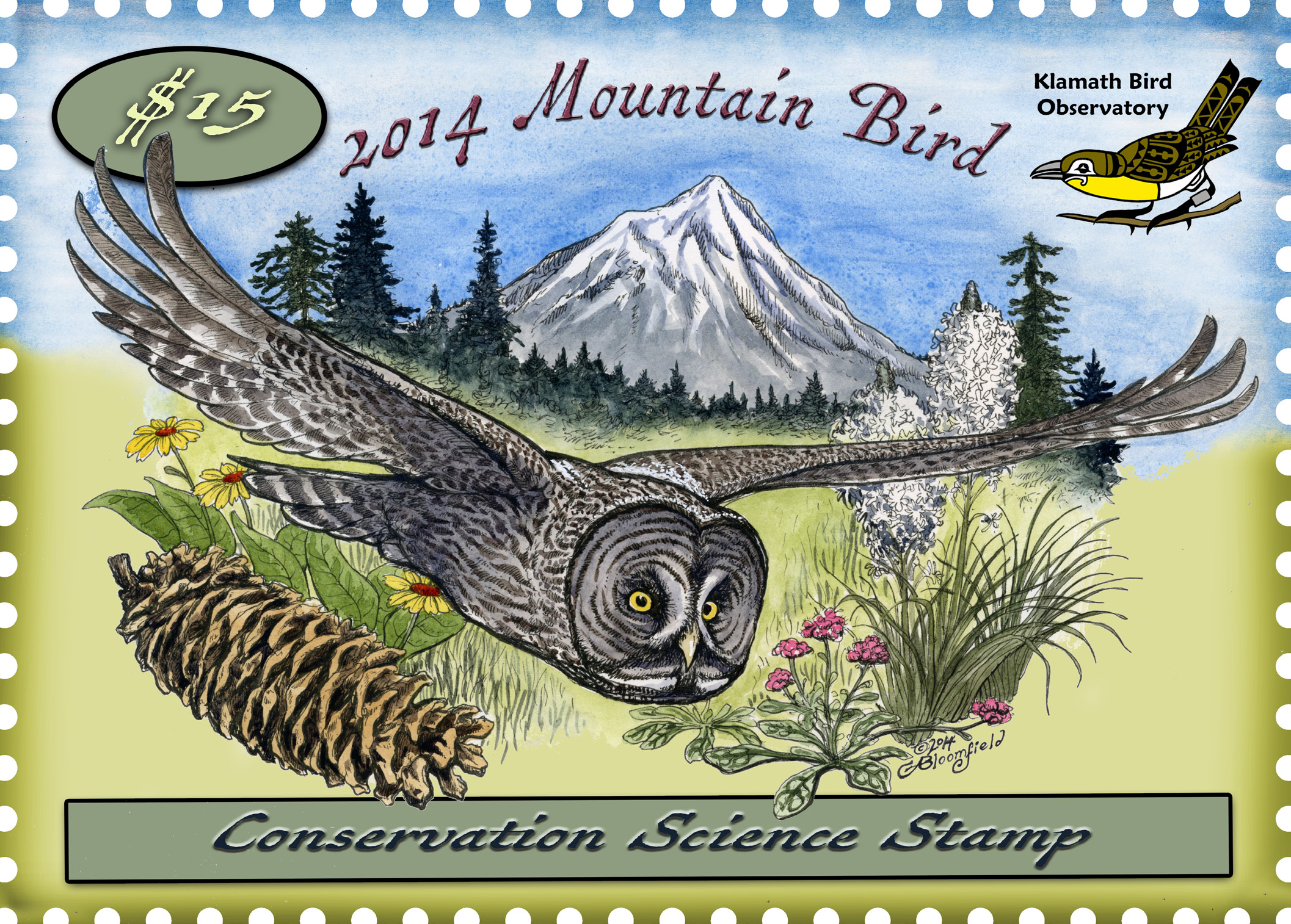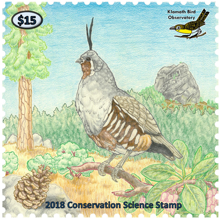 Each year, Klamath Bird Observatory offers a Conservation Stamp Set for purchase with proceeds supporting both national and regional conservation efforts. The two-stamp set includes: